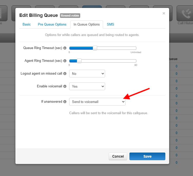 So for example, if billing needs to go to a specific user, just set the destination of that queue's final destination to that user's voicemail box.
